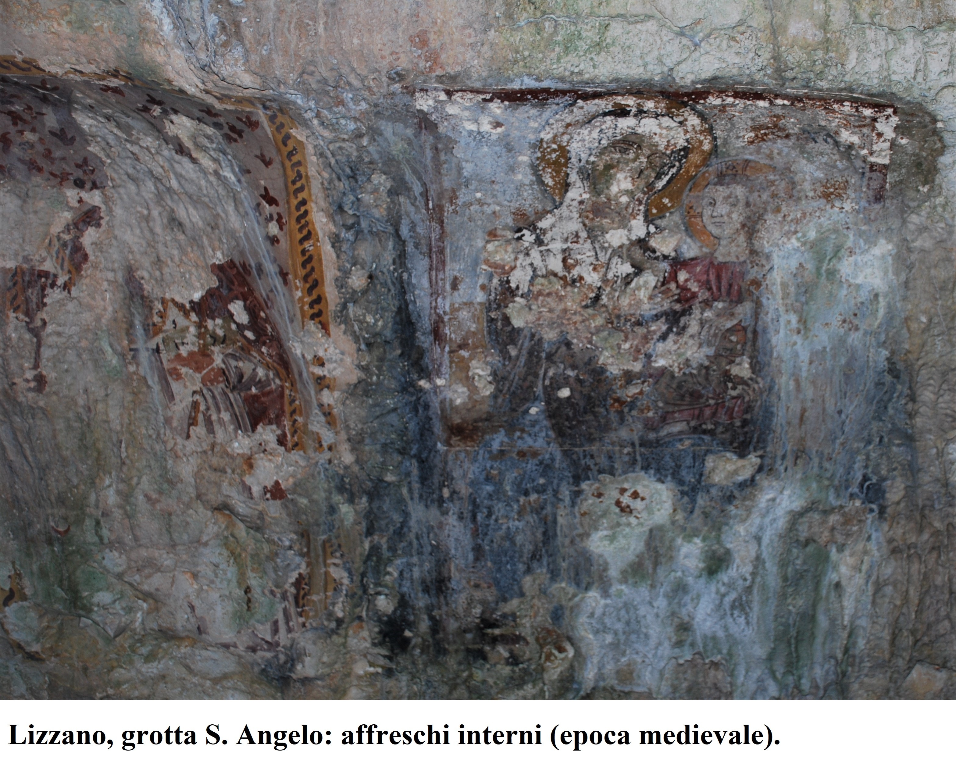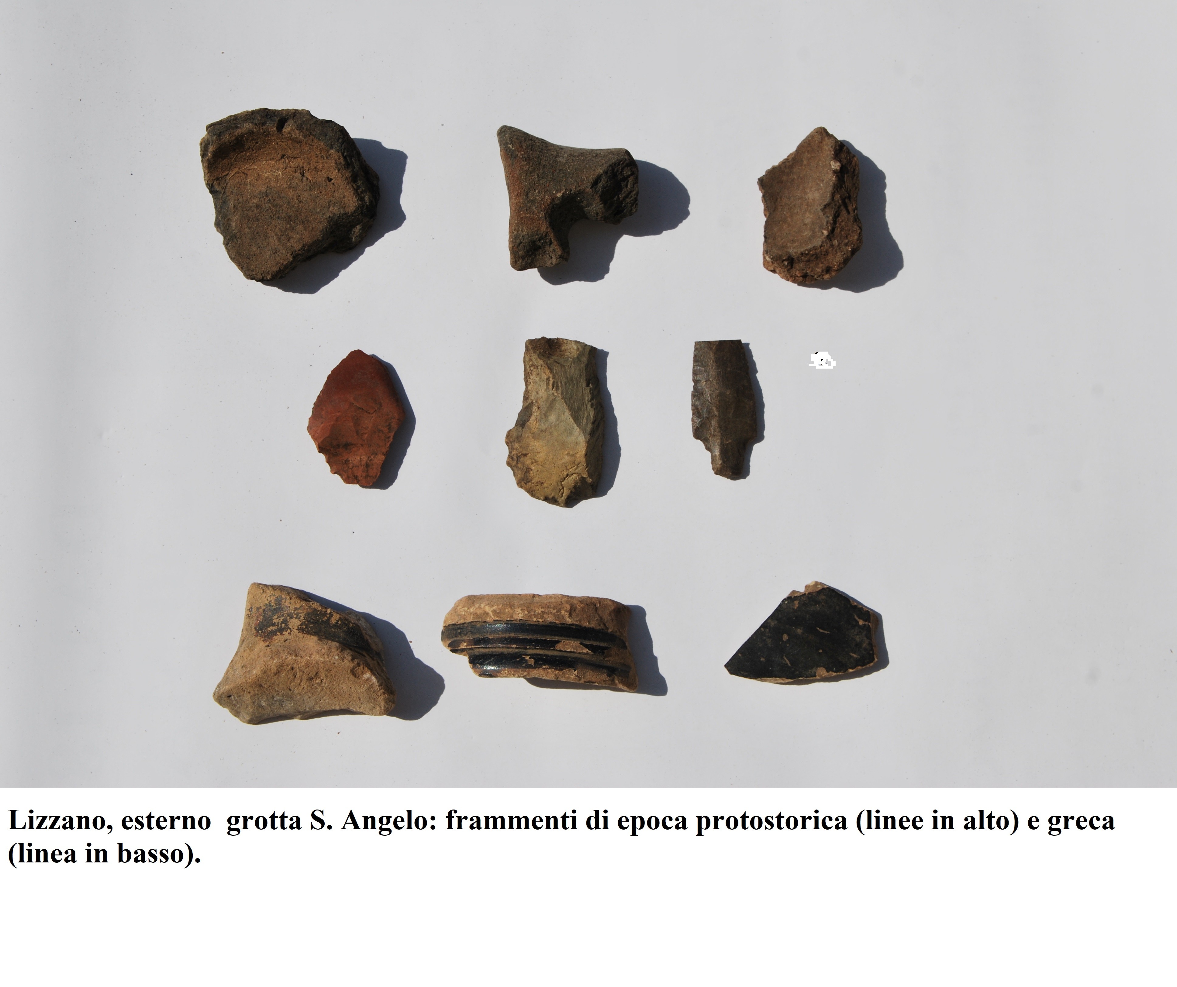 Gli attuali scavi tendono a concentrarsi all’interno della grotta, alla ricerca delle prime fasi insediative del sito, che sembrano risalire ad epoca neolitica o, addirittura, paleolitica (vedi AA.VV., La grotta S. Angelo di Lizzano, in “La Zagaglia”, XIV (1972), n. 54, pp. 160-162).