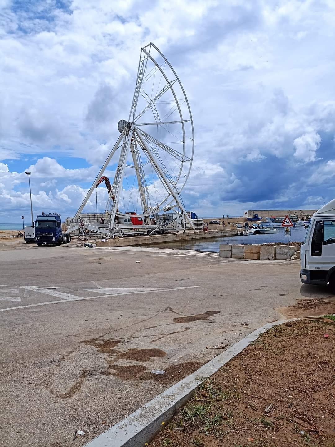Sarà una ruota panoramica alta oltre 30 metri la novità dell’estate 2022 di Campomarino di Maruggio. E’ in fase di montaggio nei pressi del porto.