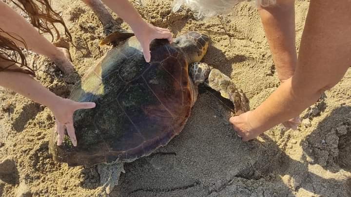 Provvidenziale la presenza di una biologa, la dott.ssa Baldacconi. La tartaruga si trovava nei pressi del lido dei Cavalieri