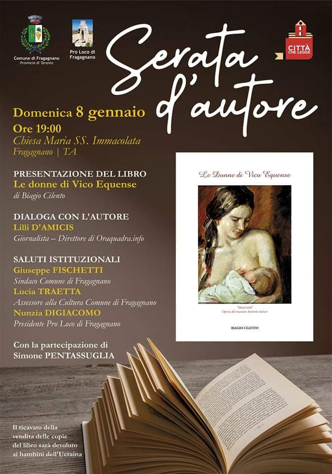 Dialogherà con l’autore Lilli D’Amicis, direttore di Oraquadra.info. Alla serata prenderà parte il giovane fragagnanese Simone Pentassuglia.