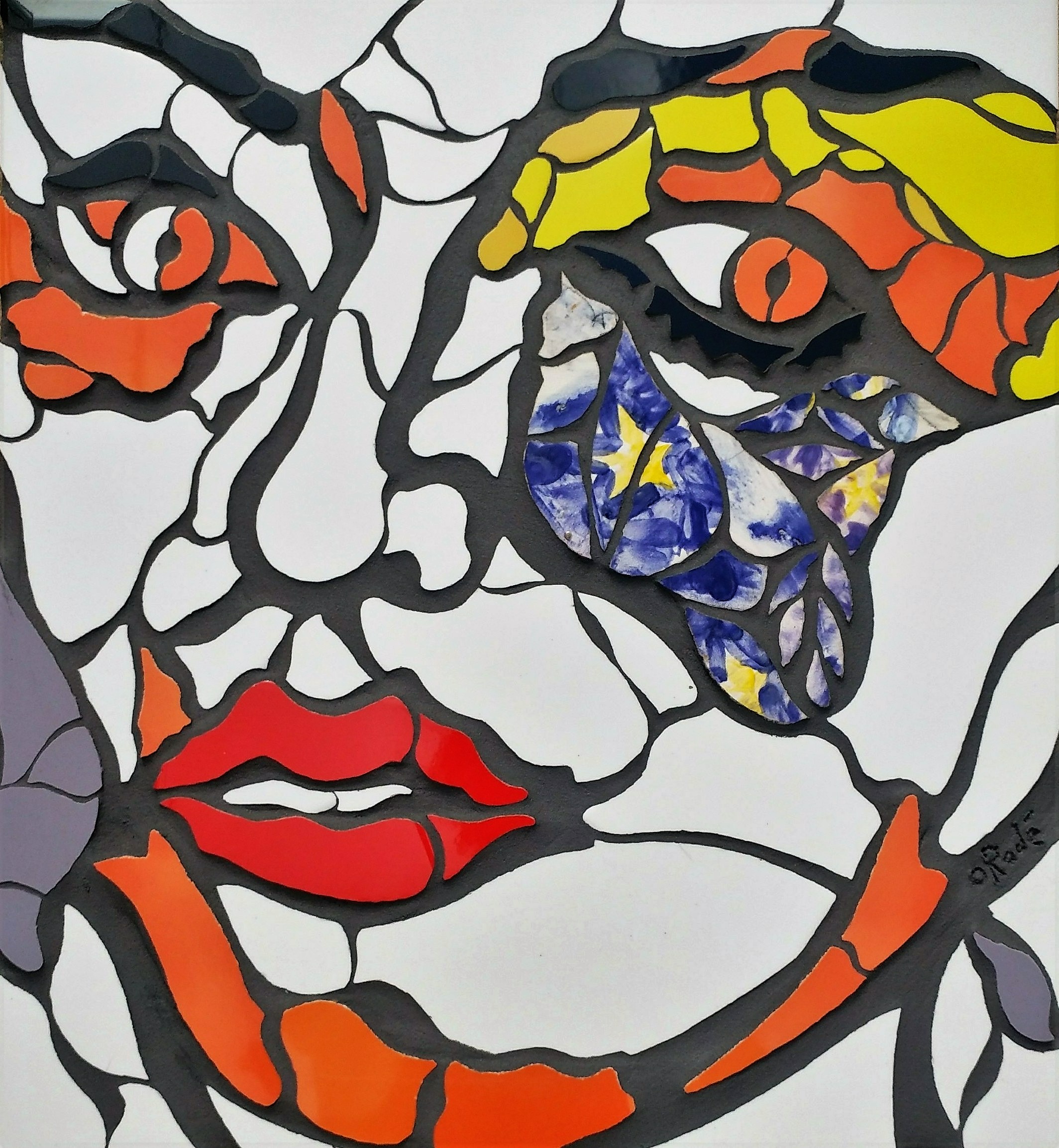 pratica stessa della sua tecnica musiva, in questo ricomporre con amore un’unità, un corpo unico, partendo da frammenti. In questo suo continuo cadere a pezzi, per rifare il mosaico, come atto d’amore, poiché, a sua detta, “tutto è per davvero solo per chi ama!”