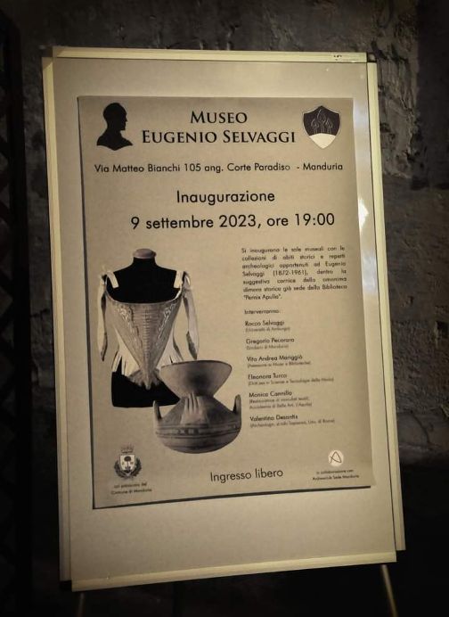 L’apertura del “Museo Eugenio Selvaggi”, inaugurato a Manduria, arricchisce il panorama culturale cittadino di un punto luce di rara caratura. Una targa a fissare il momento, non senza un pizzico di commozione della famiglia nel momento in cui essa è stata svelata. Il notevole afflusso di visitatori e l’unanime apprezzamento ricevuto dimostrano il forte legame che la famiglia Selvaggi ha storicamente mantenuto con il territorio.
