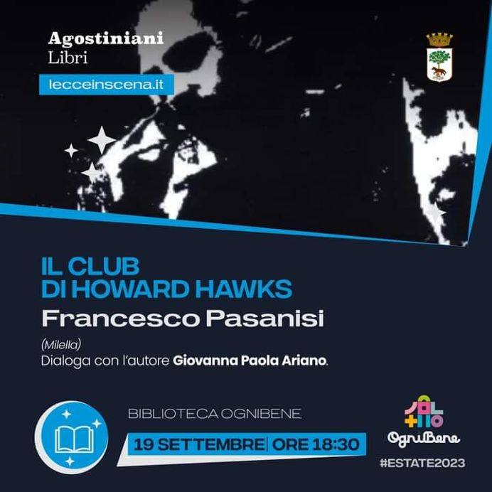 “Il club di Howard Hawks”, l’ultimo libro di Francesco Pasanisi, sarà presentato il 19 settembre, alle ore 18,30, nel giardino della biblioteca “Ognibene” di Lecce.