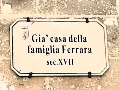 Proseguendo, pochi metri più avanti, desta interesse un portale cinquecentesco di pregevole fattura architettonica annesso all’abitazione che tradizione vuole essere appartenuta alla famiglia del Cardinale Ferrara. Il portale si compone di due colonne scanalate, ognuna delle quali divisa in tre settori da quattro fasce regolari, a mo’ di ‘tenute’, che terminano in alto con due capitelli raffiguranti maschere e motivi floreali. Alla base di ogni colonna insiste una fascia interamente coperta da una scultura decorativa, da cui partono due serie di sei rosoni (una a destra e una a sinistra) terminanti nella parte superiore con un fregio centrale. Gli elementi decorativi del portale spiccano per eleganza e maestria nella realizzazione, dando risalto all’ingresso e all’intera abitazione. Completano il fronte due finestre di antica e apprezzabile architettura (B. Perretti, ivi).
