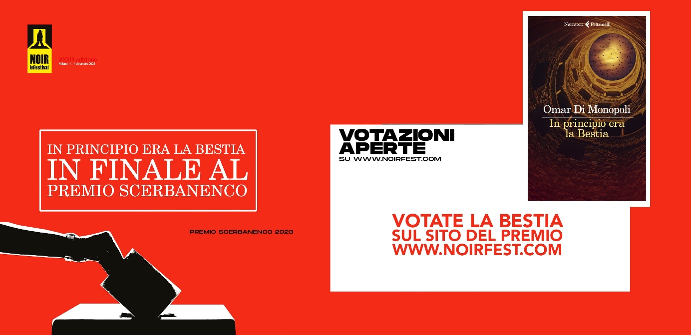 Carofiglio, De Giovanni, Lucarelli, Pandiani e altri tra i più famosi noiristi di sempre si sono aggiudicati negli anni scorsi il premio. Puoi aiutare il romanzo dello scrittore manduriano a primeggiare nelle fila dei selezionati votando sino a giorno 18 novembre il romanzo «In principio era la Bestia» tra i 15 finalisti in lizza. Il sito cui iscriversi per votare è www.noirfest.com