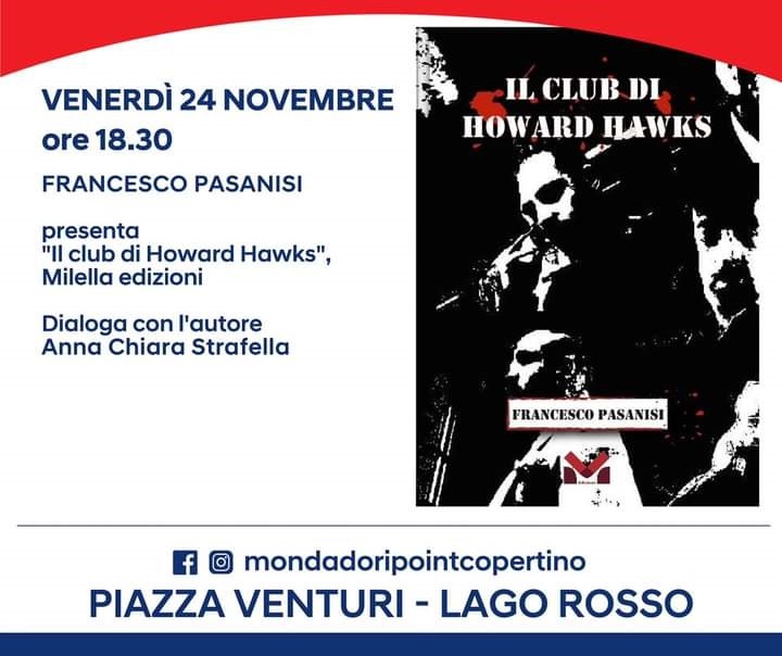 Venerdì 24 novembre, alle ore 18.30, la libreria Mondadori Point di Copertino ospiterà la presentazione dell’ultimo libro di Francesco Pasanisi “Il club di Howard Hawks”, edito da Milella edizioni. A dialogare con l’autore Anna Chiara Strafella.