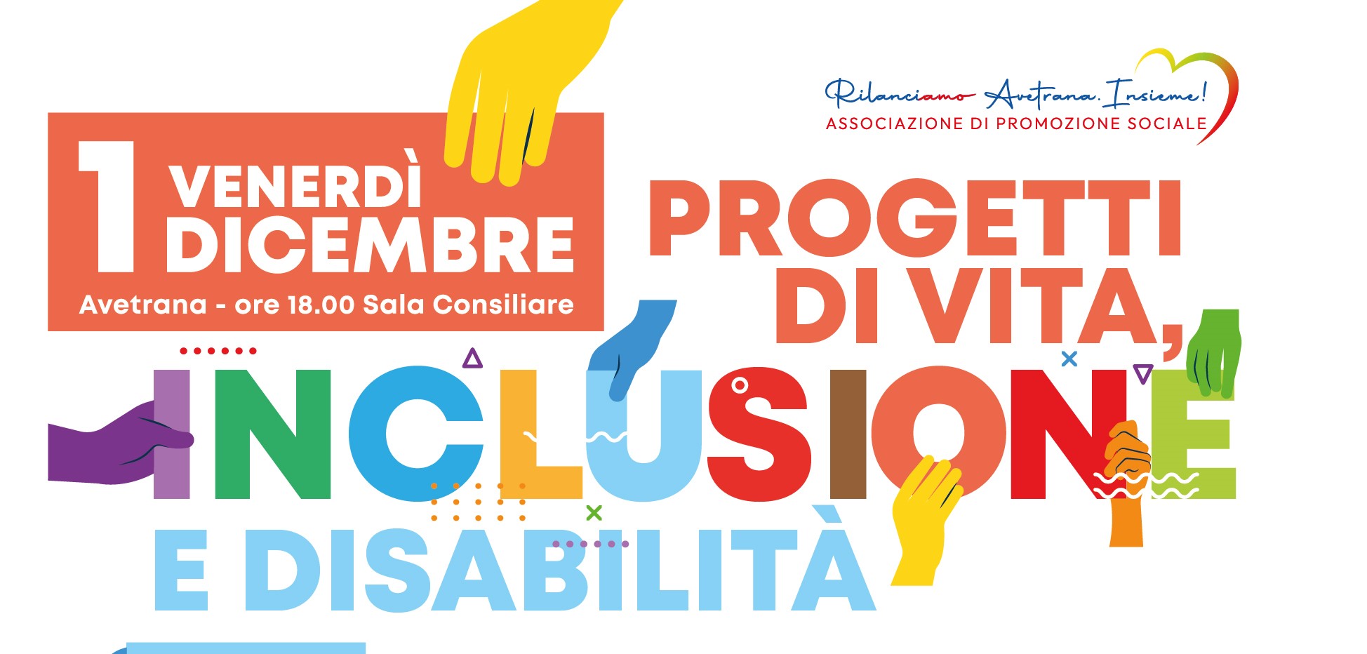 “Progetti di vita, inclusione e disabilità”: sarà questo il tema di un dibattito a più voci che, promosso dall’associazione Rilanciamo Avetrana Insieme, avrà luogo venerdì 1 dicembre, alle ore 18, nella sala consiliare.