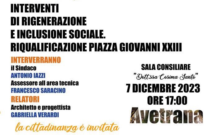“Interventi di rigenerazione e inclusione sociale. Riqualificazione di piazza Giovanni XXIII”.