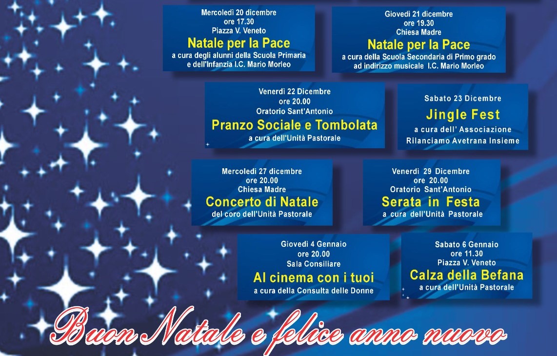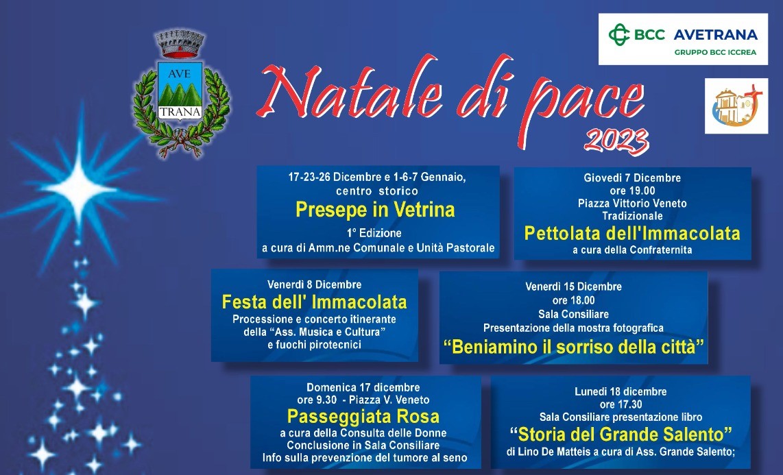 Ecco il programma delle manifestazioni inserite nel cartellone Natale di Pace 2023.