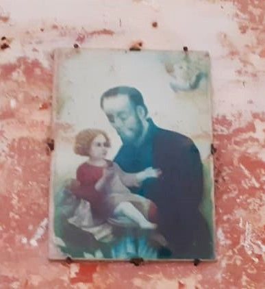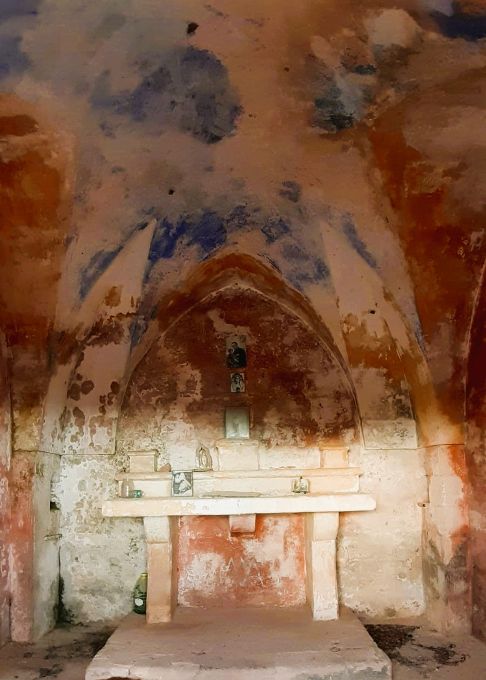 I monumenti censiti nel volume sono tanti. Riservandoci di presentarne altri in momenti successivi, in questo articolo descriviamo la cappella di S. Gaetano di Thiene nei pressi della masseria Ponsignore, lungo una vecchia via della transumanza, la “strata ti li vaccari”. «L’interno presenta un altare con un piano-mensa ben profondo (che si pone su due sostegni in pietra sagomati), su cui si erge un altro piano che ha, ai lati, due basi sopra le quali notiamo alcuni vasetti in vetro con fiori freschi. Al centro si eleva un’altra base, al di sopra della quale è posta una bacheca che ospita una statuetta del Cristo. Le pareti sono di colore azzurro e rosso e questa forte connotazione cromatica contribuisce a rendere piacevole l’aspetto dell’ambiente che è pulito, ordinato e ben curato» (p. 45). Così scriveva l’Autore negli anni delle sue ricerche. Attualmente (ottobre 2023), le mensole sono spoglie, alla parete d’altare è appesa una cornice a giorno contenente un’immaginetta consunta del Cuore Immacolato di Maria e più in alto un’altra più grande, contenente un’immagine di San Gaetano. Sacerdote appartenente alla nobile famiglia dei Thiene, egli nacque nel vicentino nel 1480 e morì a Napoli nel 1547. Qui è raffigurato secondo l’iconografia classica, in abito talare, mentre con il braccio sinistro sorregge il Bambino Gesù che, secondo la tradizione, la Madonna depose fra le sue braccia durante la sua prima celebrazione; in alto si intravede la testa di un cherubino. La colorazione delle pareti non presenta più la «forte colorazione cromatica» di cui scriveva il Perretti, anzi essa è solo parzialmente conservata. La cappella si presenta con un frontone con due paraste piatte ai lati, una cornice piatta all’ingresso e una targa in cui si legge “ AD. 1892 DICATA / B. V. ROSARIA / AC S. GAETANO THIENE”. Alla sommità un timpano triangolare scorniciato completa la struttura.