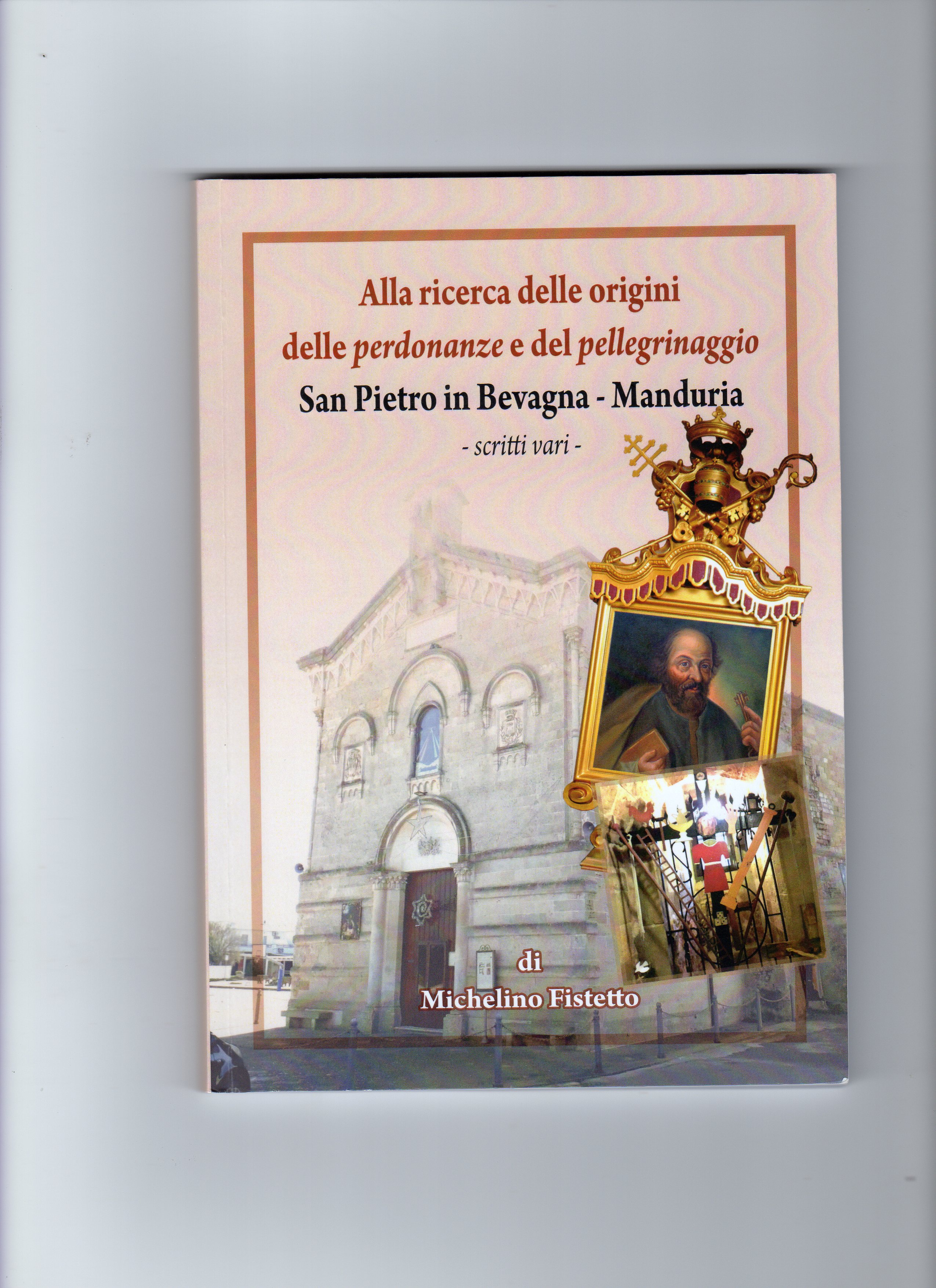 La recente pubblicazione del prof. Michelino Fistetto, già preside dell’ITC “Einaudi”, “Alla ricerca delle origini delle Perdonanze e del pellegrinaggio San Pietro in Bevagna – Manduria”, arricchita da documenti e da un apparato fotografico, è una raccolta di alcuni scritti dell’autore redatti in occasioni diverse e pertanto con una loro peculiarità, ma legati da un unico filo conduttore: il culto di San Pietro e le perdonanze.