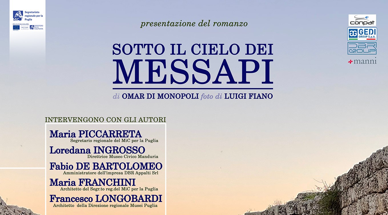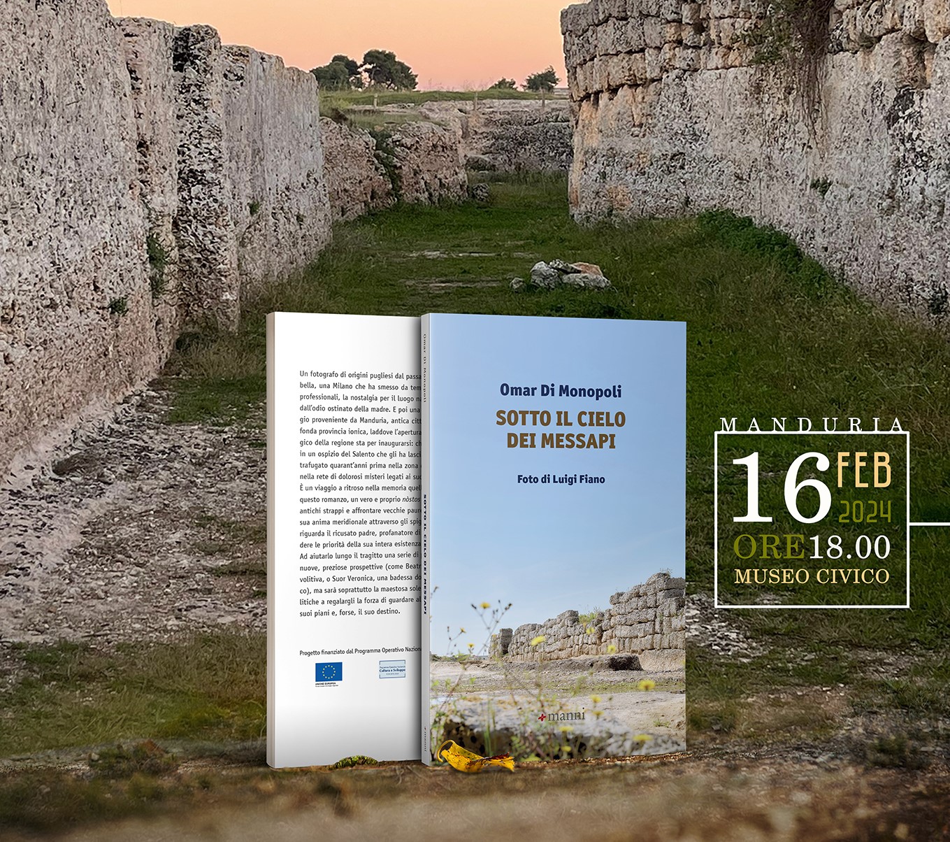 Il Parco Archeologico di Manduria diventa protagonista di rilievo nel romanzo scritto da Omar Di Monopoli. Si intitola infatti “Sotto il cielo dei Messapi” (ed. Manni) il libro dello scrittore di origini pugliesi, residente da tempo a Manduria, che sarà presentato in anteprima venerdì 16 febbraio, alle ore 18, al museo civico di Manduria.