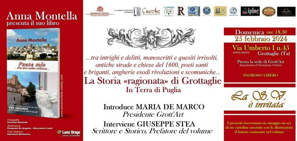 Domenica 25 febbraio Anna Montella presenterà al pubblico “Paese mio… che stai sulla collina…”, il suo nuovo libro sulle vicende storiche di Grottaglie, città del Nord Salento in Terra di Puglia.