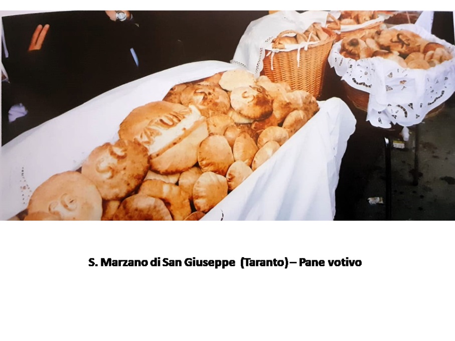 Il pane votivo è donato dai devoti per voto oppure per grazia ricevuta. Si risale così al mito di Demetra, dea delle messi, rielaborato e cristianamente espresso nella figura di san Giuseppe. All’antico mito fanno riferimento anche gli altari mirabilmente allestiti e ornati con i pani votivi. Recentemente è stata ripresa l’antica usanza di allestire l’altare di San Giuseppe nelle case, che diventano per questo piccole chiese domestiche dove si respira fede e devozione, e dove la figura di san Giuseppe acquista quasi valenza di nume tutelare domestico.