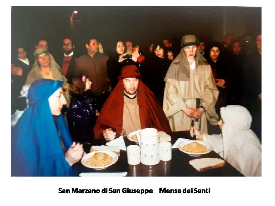 I banchetti di san Giuseppe (o pranzo dei santi) sono tavolate devozionali imbandite con una gran varietà di pietanze (dall’alta valenza simbolica e apotropaica), che vengono offerti dai devoti ad un certo numero di persone, minimo tre, massimo tredici, chiamate “santuzzi”