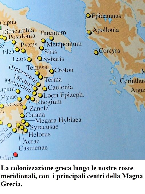 Nello spazio di un centinaio di anni la Sicilia, la Calabria, la Campania, la Lucania e la Puglia si arricchiscono di colonie greche, cioè di città abitate da Greci ed organizzate secondo usi e consuetudini greche.