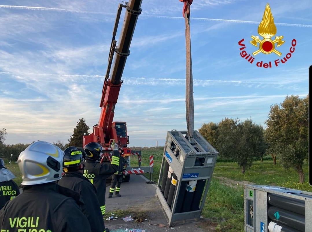 Si ribalta un camion che trasportava bombole di ossigeno. Il camioncino ha poi iniziato a perdere carburante: l'area è stata oggetto di una bonifica da parte dei vigili del fuoco.