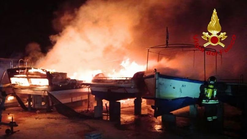 Imbarcazioni in fiamme nella notte in un deposito di Gallipoli. Per spegnere l’incendio, necessario l’impiego di un’autobotte dei vigili del fuoco del Comando di Lecce - distaccamento di Gallipoli. Diverse le imbarcazioni avvolte dalle fiamme. Le cause dell’incendio sono ancora ignote.