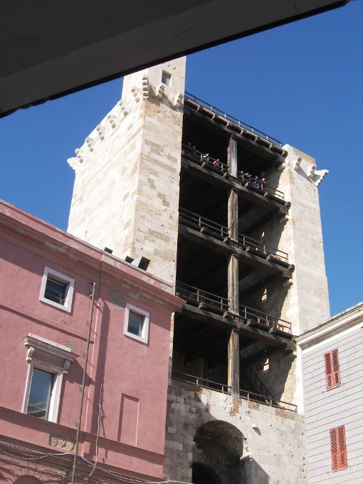 Nelle immagini: pianta dello scultore architetto Carlo Francesco Centonze, rinvenuta nel 1985 nell’Archivio di Stato di Napoli; stralcio riproducente il castello dalla “prospettiva di Casalnuovo del 1643” sempre rinvenuta nell’Archivio di Stato di Napoli; esterni del coro della Chiesa Matrice con visibili, in cima, le aperture per il posizionamento di artiglierie; la Torre di S.Pancrazio di Cagliari che, come l’altra gemella dell’Elefante, è un tipico esempio di torre difensiva chiusa su tre lati e aperta verso l’interno; il Palazzo Imperiali-Filotico in una rara foto dei primi del secolo scorso, sul portale centrale è ancora visibile lo scudo araldico degli Imperiali, successivamente caduto (per gentile concessione del sig. Antonio De Florio)
