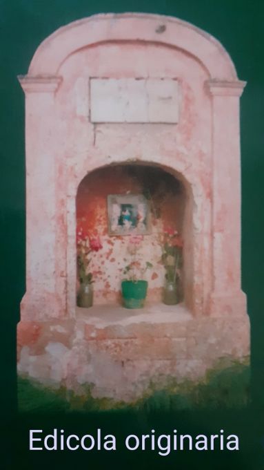 Oggi l’edicola è stata ricostruita perché abbattuta dall’impatto seguito a un incidente stradale. La struttura appare rialzata rispetto al piano di calpestio stradale e presenta, nella parte superiore, una targa dedicata a Maria, nella quale si legge: «Ferma il passo o viaggiatore / inchinati a Maria e prega / e pensa che si muore».
