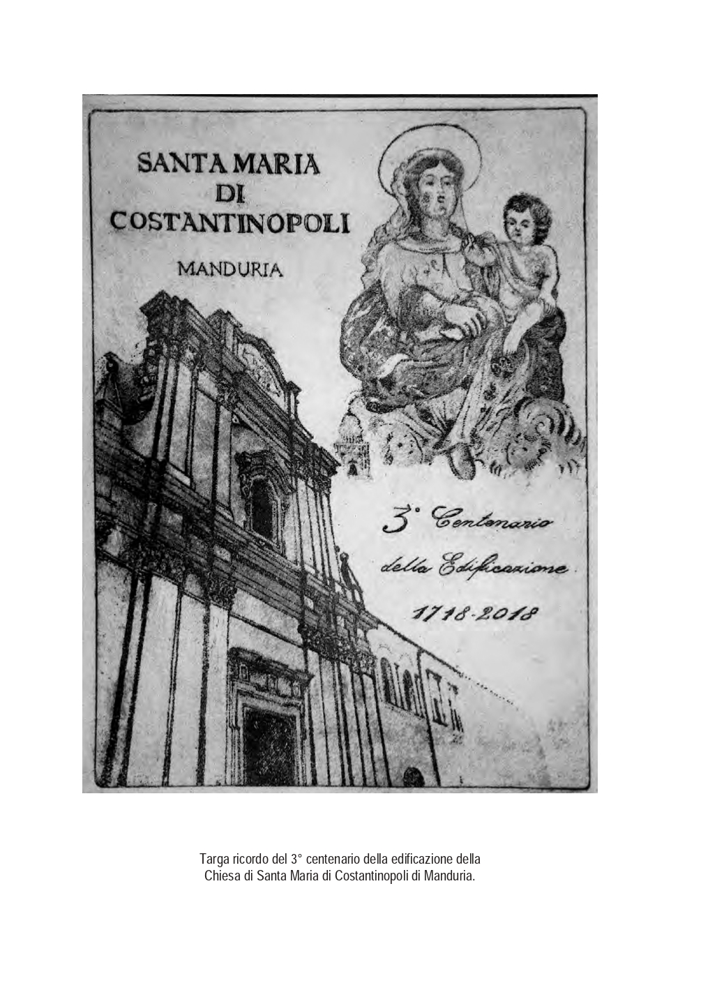 E’ la sintesi di una più corposa ricerca storica condotta dall’autore sulla chiesa di Santa Maria di Costantinopoli e l’annesso monastero dei Padri Agostiniani di Manduria
