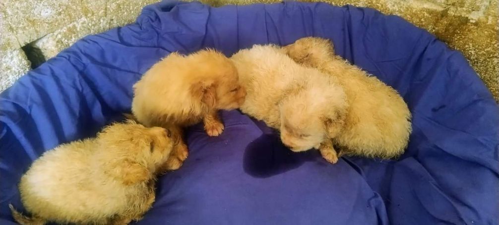 Quattro cagnolini di circa 40 giorni chiusi in un sacco e abbandonati nelle campagne.