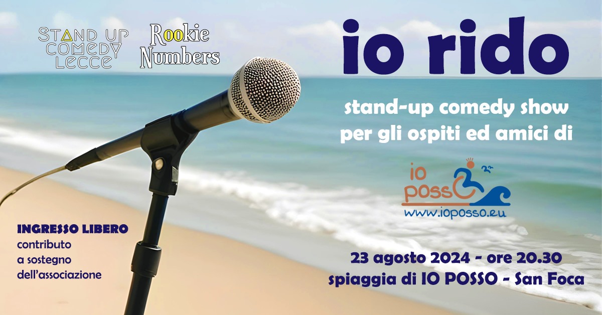 Venerdì 23 agosto, alle 20.30, vi sarà "Io Rido", serata a sostegno del lido IO POSSO di San Foca, la spiaggia accessibile nata nel 2015 per accogliere al mare tutte le persone con disabilità motorie in sicurezza e completa gratuità.