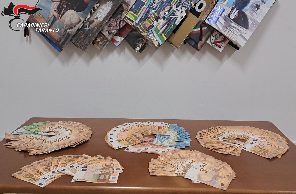 Durante una perquisizione personale e veicolare, i Carabinieri rinvengono, tra i sedili anteriori, una busta in cellophane contenente mazzette di denaro per un totale di circa seimila euro e le ricevute di prelevamento presso diversi sportelli ATM.