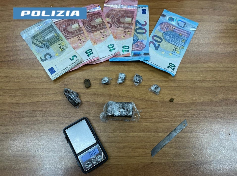 Su un davanzale della finestra di una stanzetta, i poliziotti hanno rinvenuto una busta di cellophane contenente 8 tocchetti di hashish del peso complessivo di circa 32 grammi.
