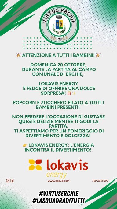 A tutti i bambini, durante la partita, Lokavis Energy offrirà una dolce sorpresa: popcorn e zucchero filato.