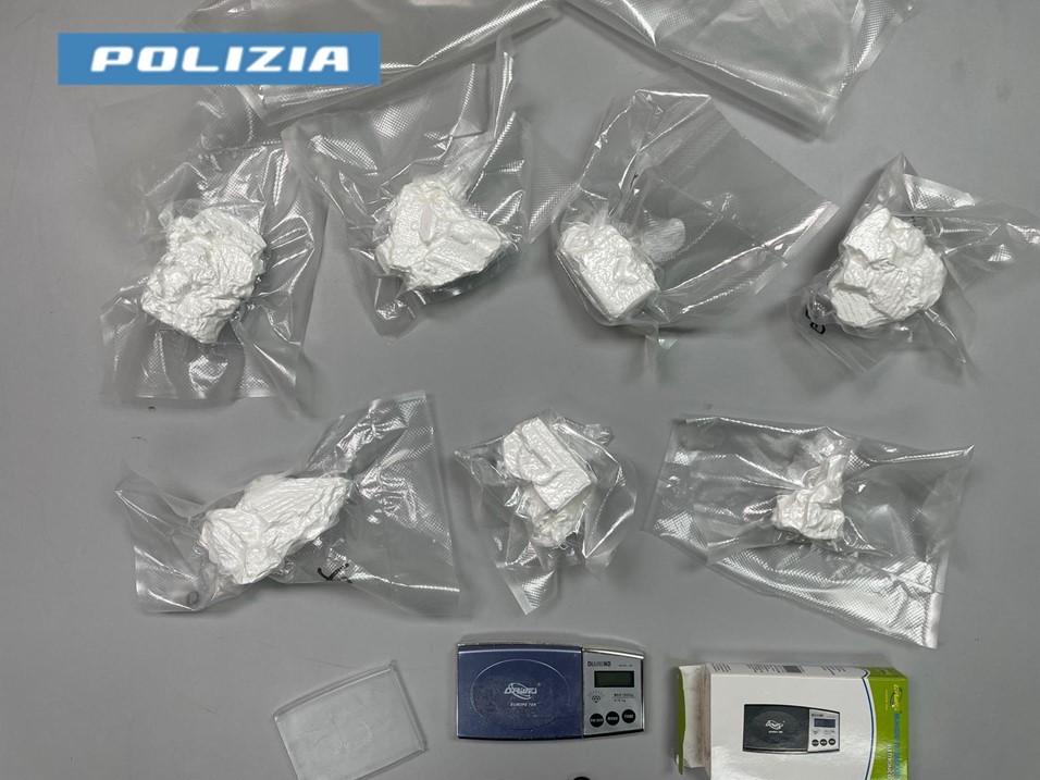 Dopo essere riusciti a recuperare la chiave della porta blindata di quell’abitazione che era ben nascosta in un cassetto della cucina, i poliziotti hanno controllato minuziosamente i locali, recuperando all’interno di una lavatrice, custodita in una borsa termica sette involucri in cellophane trasparente, sigillati in buste sottovuoto identiche a quelle rinvenute poco prima con all’interno cocaina, per un peso complessivo di circa 700 grammi ed un bilancino di precisione digitale, funzionante ancora intriso della stessa sostanza stupefacente.