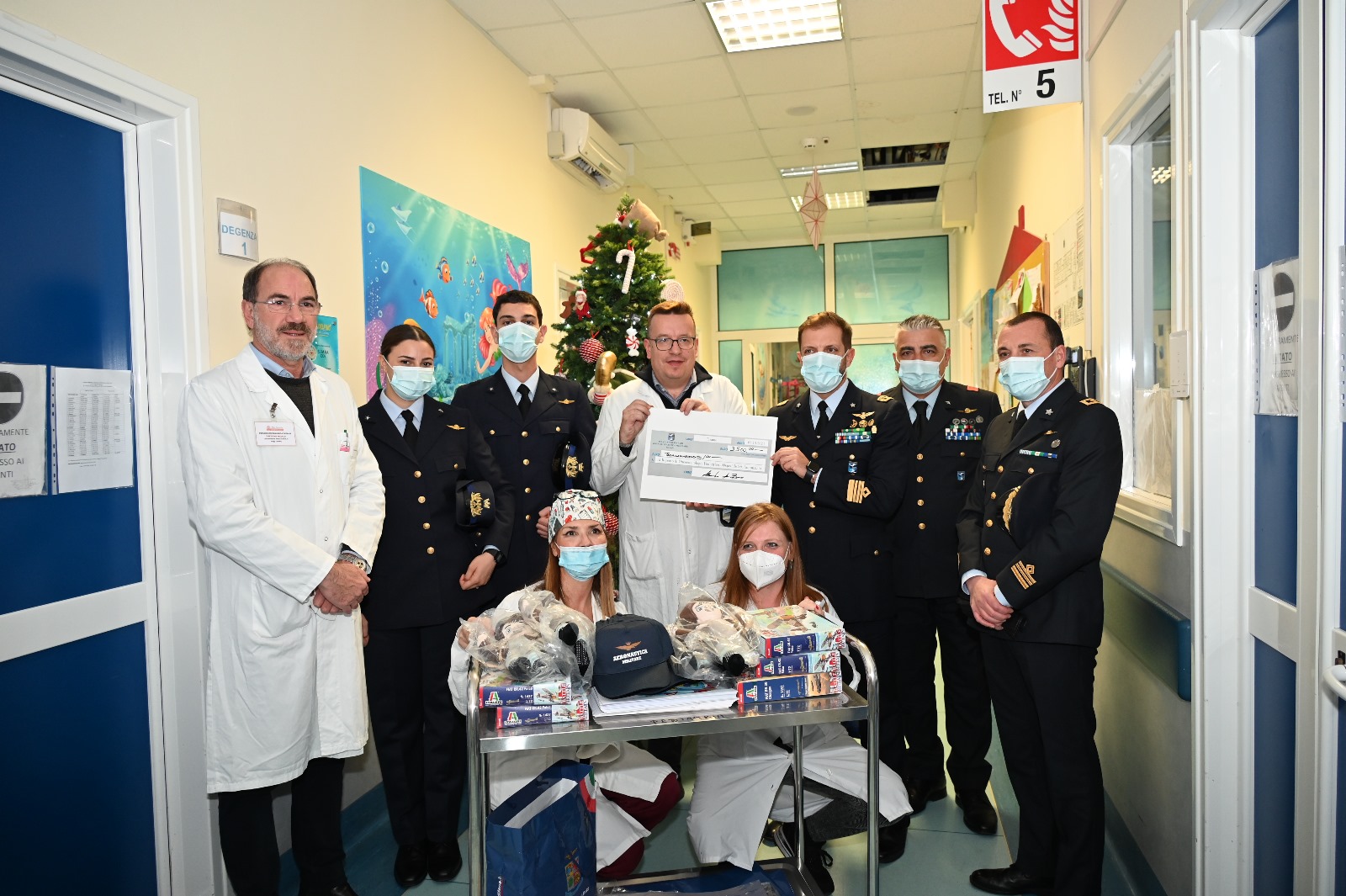 Una rappresentanza del personale della SVAM e di avieri Volontari in Ferma Iniziale del 28° Corso VFI hanno donato ai bambini e ai ragazzi dei regali dell’Aeronautica Militare, come augurio per loro e per le loro famiglie, e annunciato la donazione di tremilacinquecento euro, raccolte attraverso le donazioni volontarie degli allievi e del personale della SVAM, per l’acquisto di macchinari sanitari a favore delle cure oncologiche.
