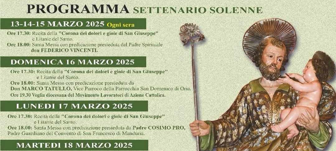 «In questo anno giubilare, mentre la Chiesa ci invita a rinvigorire la nostra speranza, viviamo il ricordo liturgico di San Giuseppe chiedendo ancora una volta a lui la custodia della Santa Chiesa» è riportato nel messaggio del priore Mirella Massafra e del padre spirituale don Federico Vincenti diffuso attraverso il manifesto.