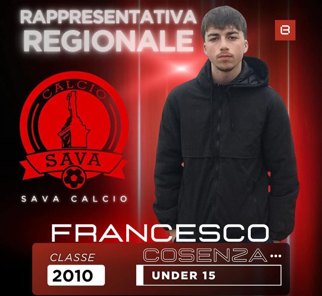 Il centrocampista del Sava Francesco Cosenza, classe 2010, è stato convocato per la rappresentativa regionale Giovanissimi under 15. Il raduno si svolgerà mercoledì, alle 14,30, presso lo stadio comunale di Alberobello, guidato dal selezionatore Marcello Protopapa.