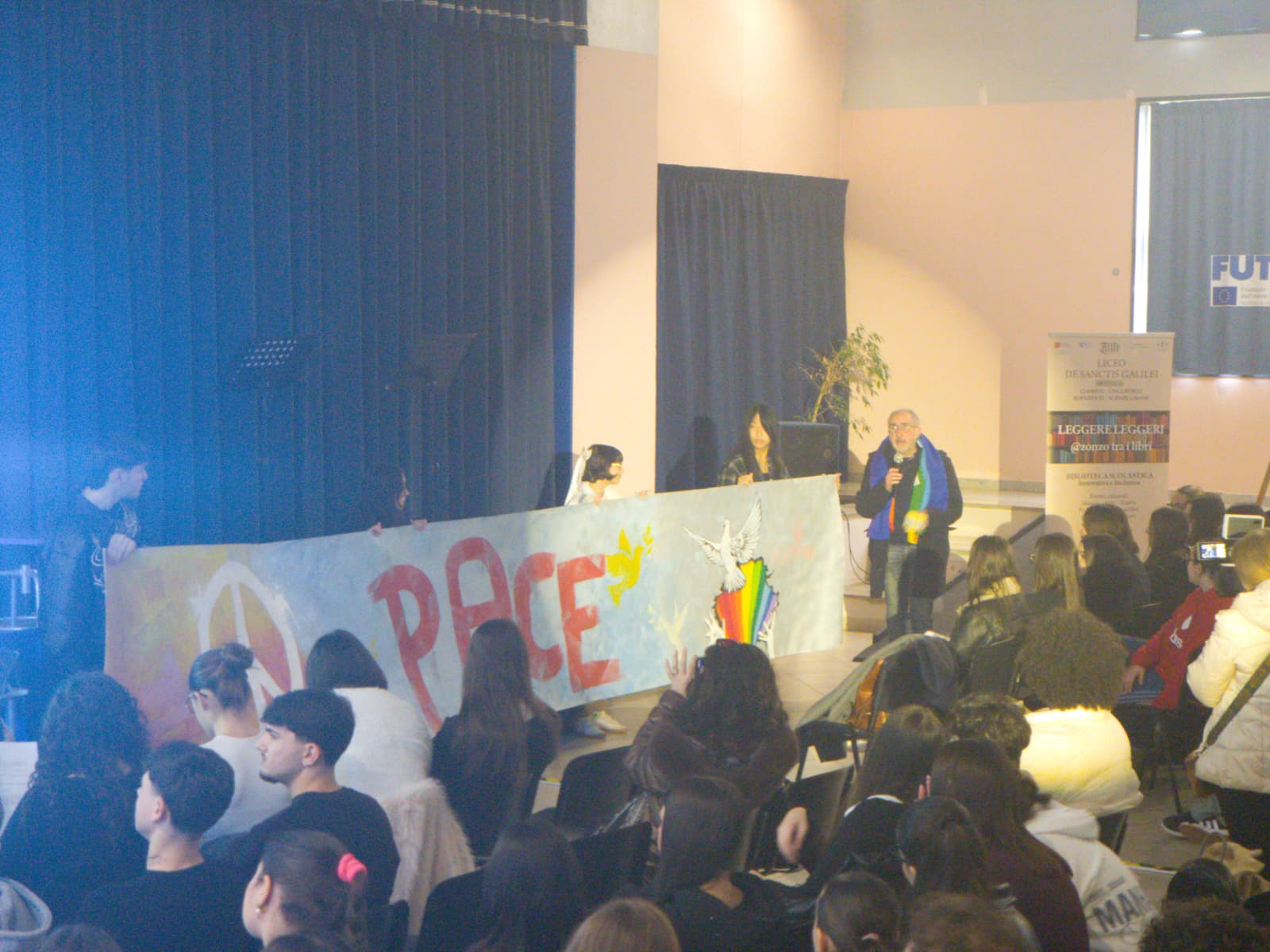 Coinvolti studenti, docenti e rappresentanti dei Consigli d’Istituto di entrambe le scuole, riuniti in un percorso a tappe che ha unito idealmente – e fisicamente – le sedi scolastiche in una staffetta simbolica. A parlare, sono stati linguaggi diversi: quello dell’arte, della storia, della scienza, della letteratura, dell’etica e della musica. Un passaggio di testimone che ha abbracciato temi complessi come la sofferenza dei popoli in guerra, le responsabilità storiche, il coraggio delle scelte individuali e collettive, il desiderio di costruire un futuro più giusto.