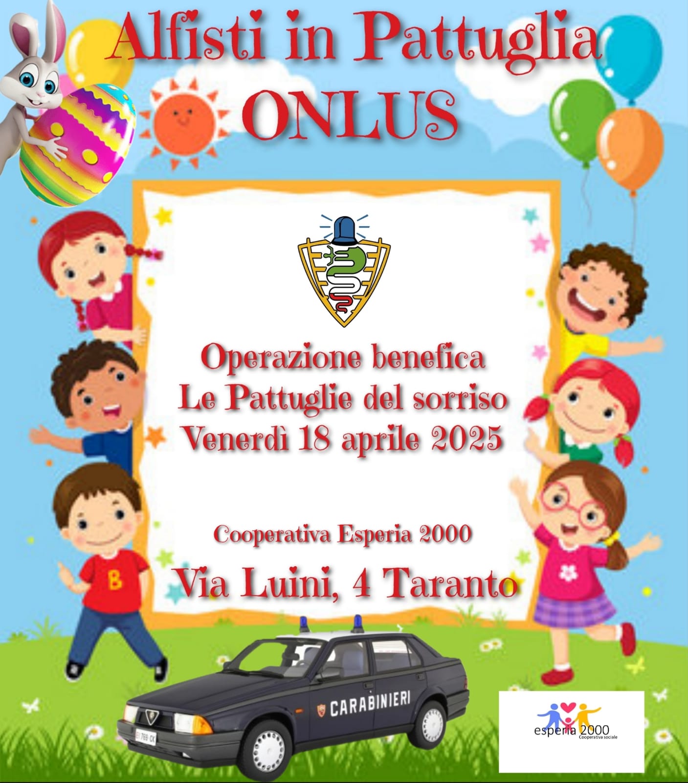 Venerdì 18 aprile il Club Alfisti in Pattuglia sarà presso l’associazione Ohana (sita in via Luini 4 a Taranto) per donare alcuni alimenti, materiale richiesto dalla struttura e soprattutto le uova Pasquali ai piccoli supereroi ospitati dal centro che gestisce minori a devianza sociale, assegnati da parte del Tribunale dei Minori.