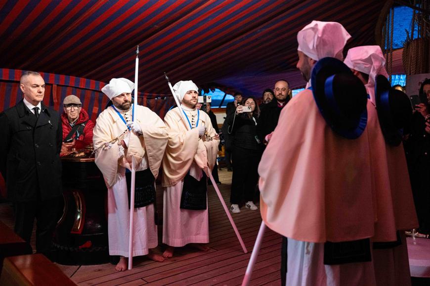 TARANTO - Settimana Santa, ecco alcune suggestive immagini del passaggio delle Poste su nave Amerigo Vespucci